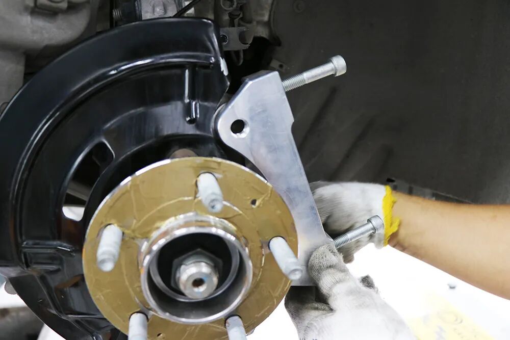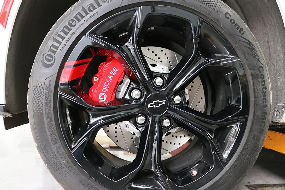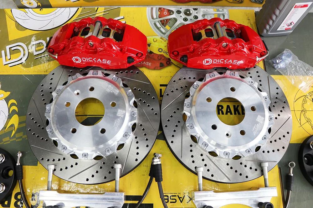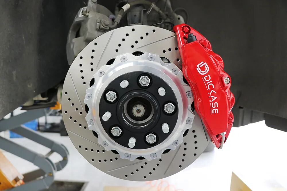 因为他是原车是17寸轮毂,而原车轮毂=要加法兰,17寸=大四活塞,所以给他配备的是DICASE D41大四活塞刹车搭配330刹车盘,外加20mm法兰垫片。